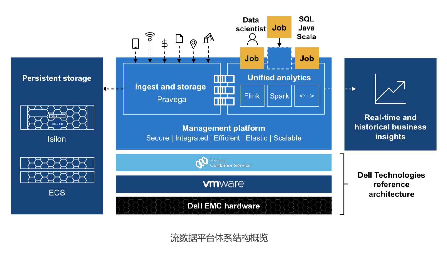 Dell 流数据平台是一个创新的企业级软件平台,它使企业能够将其实时数据和历史数据整合到一个单一的、自动扩展的基础架构和编程模型中。使用流数据平台,组织可以通过使用非结构化数据来实现整个生态系统的创新。