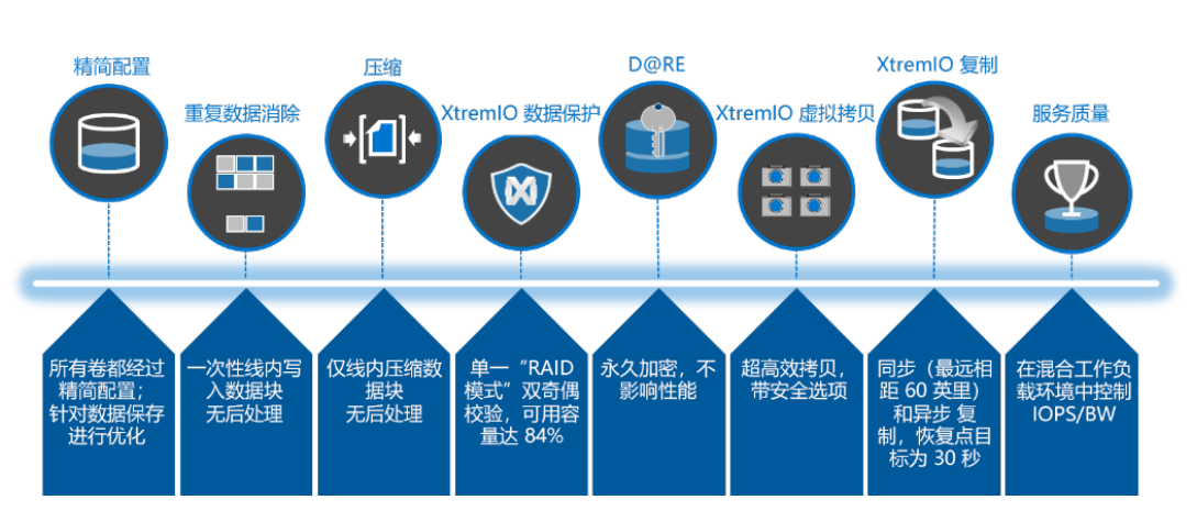 Dell XtremIO 是一款专用全闪存阵列,可提供始终如一的高性能和低延迟效果,得益于线内全时段数据服务的卓越的存储效率;丰富的应用程序集成拷贝服务和空前的管理简单性。新一代平台 XtremIO X2 以 XtremIO 的独特功能为基础,为您的数据中心和业务提供更出色的敏捷性和简便性。借助内容感知型的内存中元数据和线内全时段数据服务,XtremIO 成为了适用于虚拟服务器和桌面环境,以及受益于高效的拷贝数据管理的工作负载的优秀平台。该体系结构提供两倍的VMware XCOPY 操作,由于内存操作,可以达到高达 40 GB/s 的带宽。X2 包括线内全时段数据服务:精简配置、重复数据消除、压缩、同步和异步复制、静态数据加密 (D@RE)、XtremIO 虚拟拷贝 (XVC) 和无性能影响的双固态驱动器 (SSD) 故障防护。只有 XtremIO 独有的内存中元数据体系结构可以完成这些功能。